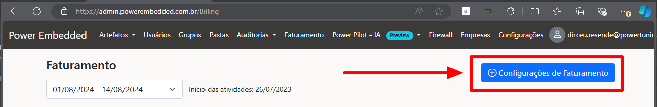 - O CNPJ ou CPF de faturamento do Power Embedded