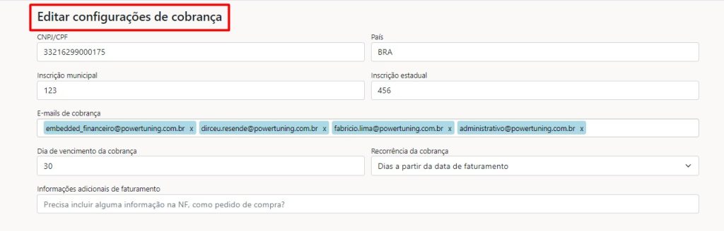 Um necessidade bem comum entre os clientes do Power Embedded, é alterar o dia de vencimento das faturas, os emails de cobrança e alguns dados cadastrais para o faturamento, como informar a ordem/pedido de compra.
