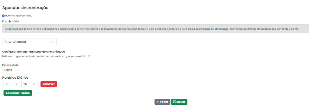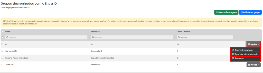 Antes, a sincronização dos grupos com o Entra ID acontecia automaticamente todos os dias às 22h. Caso fosse necessário atualizar em outro momento, era preciso realizar o processo manualmente.