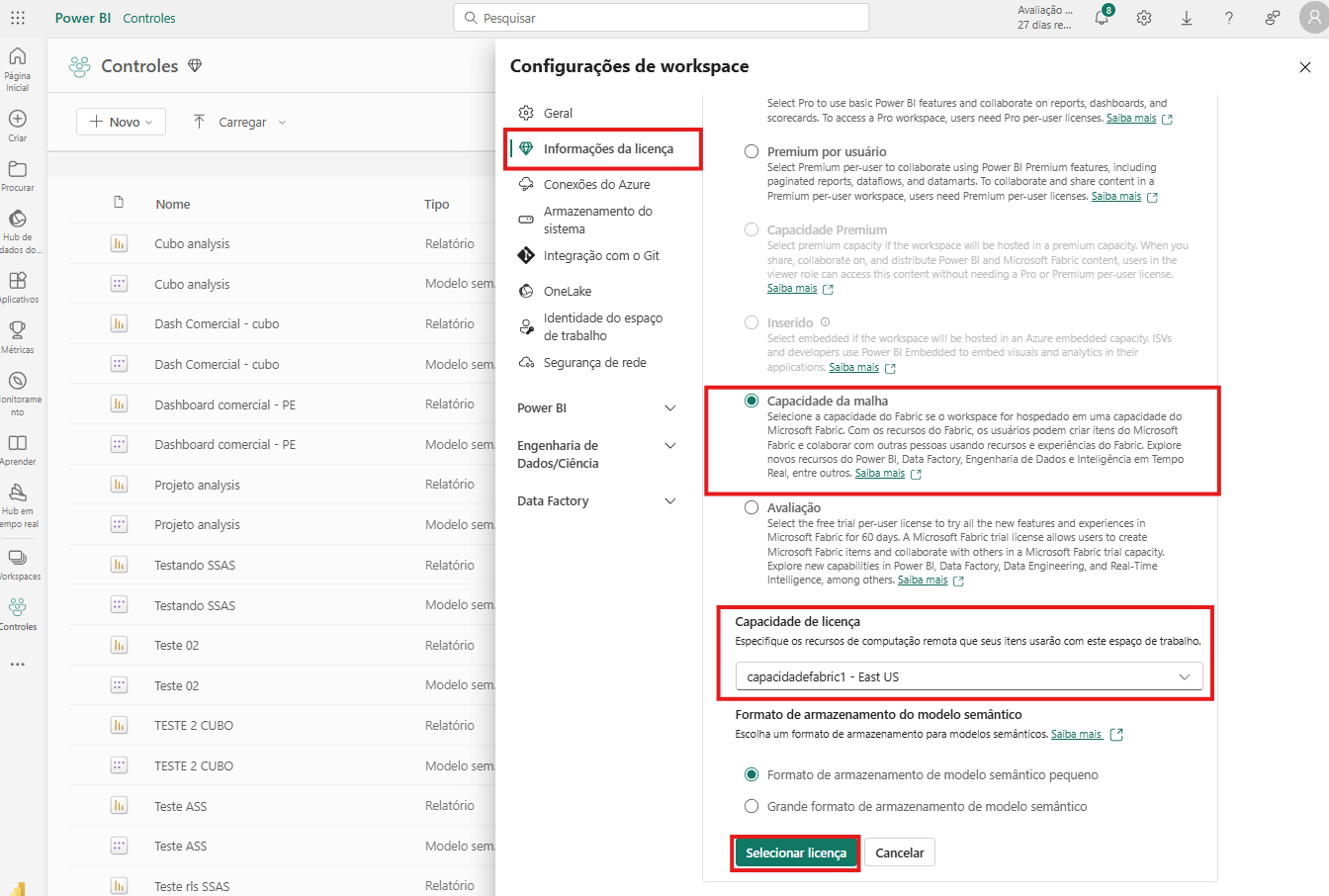 Atribuindo um Workspace a uma capacidade