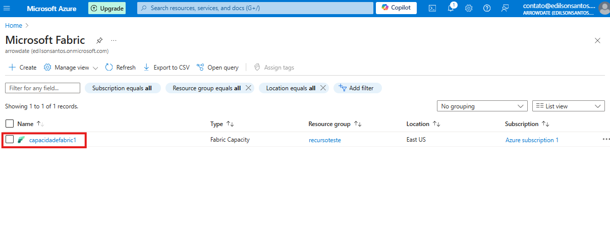 No portal do Azure busque pelo recurso contratado e clique sobre ele.