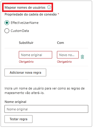 Caso você queira utilizar um usuário fixo, independente de quem estiver acessando o relatório, basta utilizar um asterisco (*) no nome original e o nome do usuário que será utilizado para fazer a conexão.