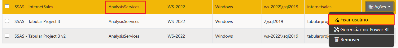 Fixar usuários no Analysis Services