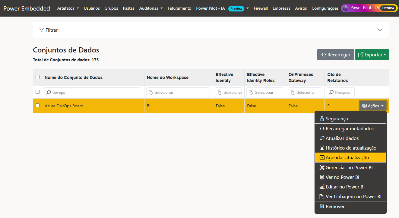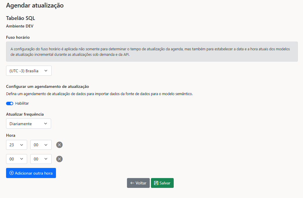 Agora é possível configurar atualizações agendadas diretamente pelo portal, tornando o processo não apenas mais simples, mas também muito mais flexível. Com esta funcionalidade, você pode dizer adeus às limitações de intervalos de 30 minutos e aproveitar atualizações ilimitadas!