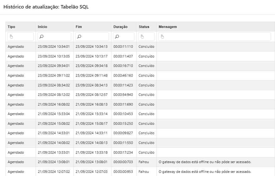 Além de configurar o agendamento, é altamente recomendável monitorar regularmente possíveis erros nas atualizações dos seus modelos semânticos.