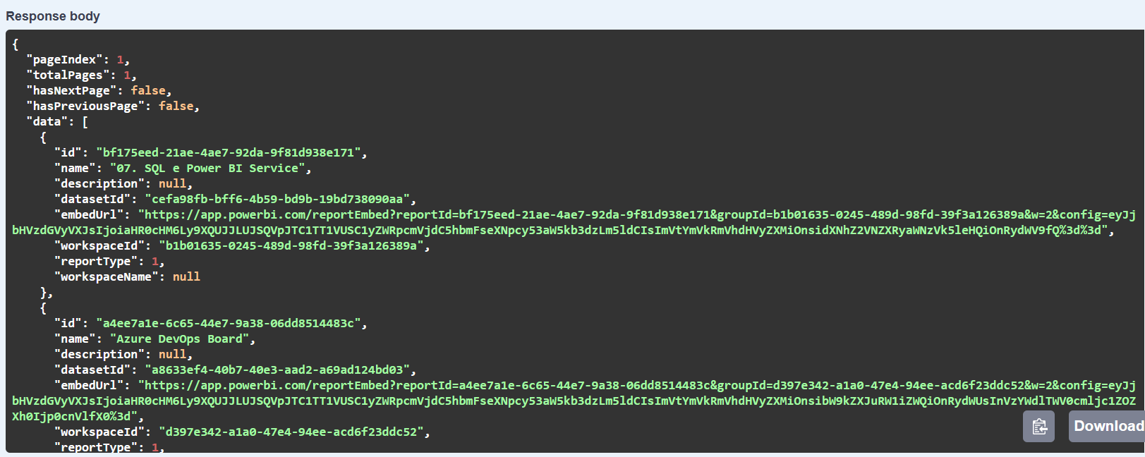 - O ID do relatório que será embeddado (Ex: a4ee7a1e-6c65-44e7-9a38-06dd8514483c)