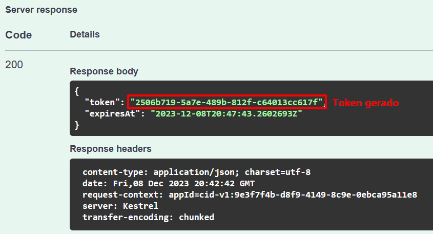 - O token gerado no passo anterior (Ex: 2506b719-5a7e-789b-812f-c64013cc617f)