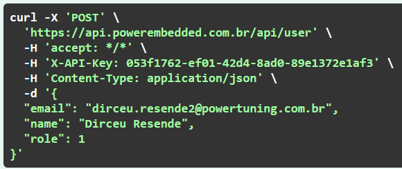 Para criar um novo usuário no sistema, utilize a chamada abaixo: