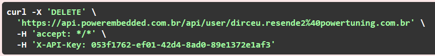 Para apagar um usuário do sistema, utilize a chamada abaixo: