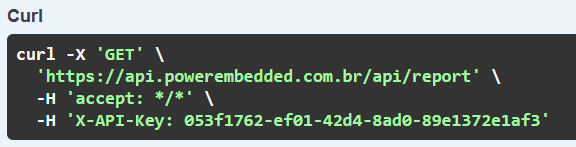 Para conseguir gerar o token de acesso e renderizar os relatórios na sua aplicação, você deverá primeiro obter o token usando a chamada abaixo: