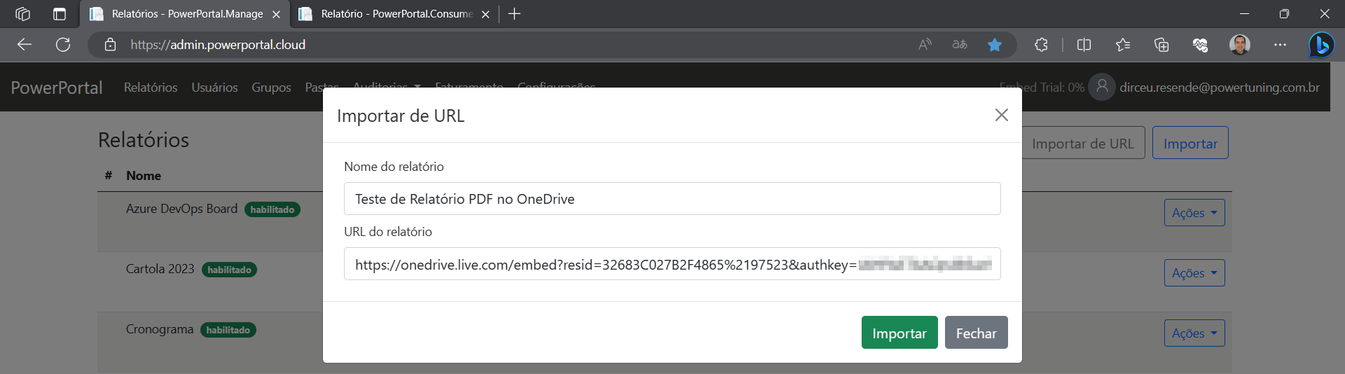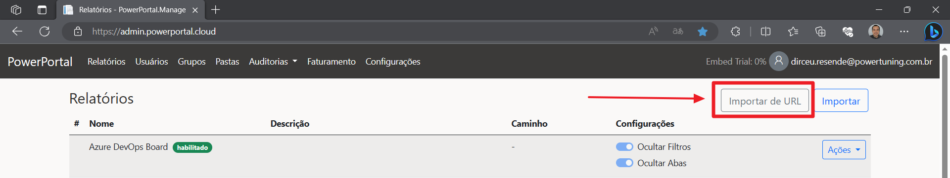 Para utilizar o recurso, vá até a página de Relatórios e clique no botão “Importar de URL”