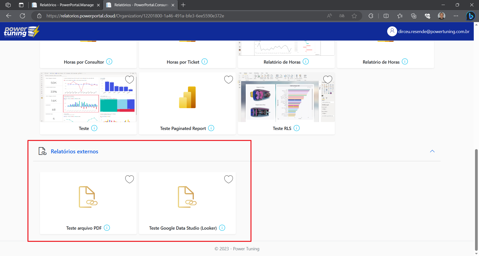 Após importar essa URL externa, ela estará disponível na página de relatórios como qualquer outro relatório do Power BI que você já importou.