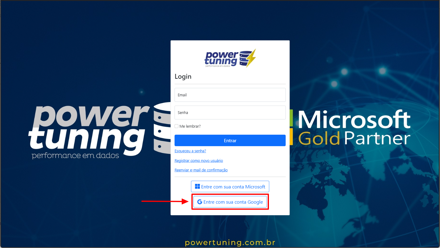 Para entrar no sistema utilizando essa nova integração, basta utilizar o botão “Entre com a sua conta Google”, no final do formulário de login.
