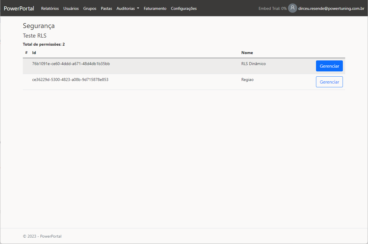 - Se nenhum dos cenários acima for verdadeiro, então o sistema não irá enviar nenhuma role para o RLS, e irá considerar que o relatório não possui regras de RLS.