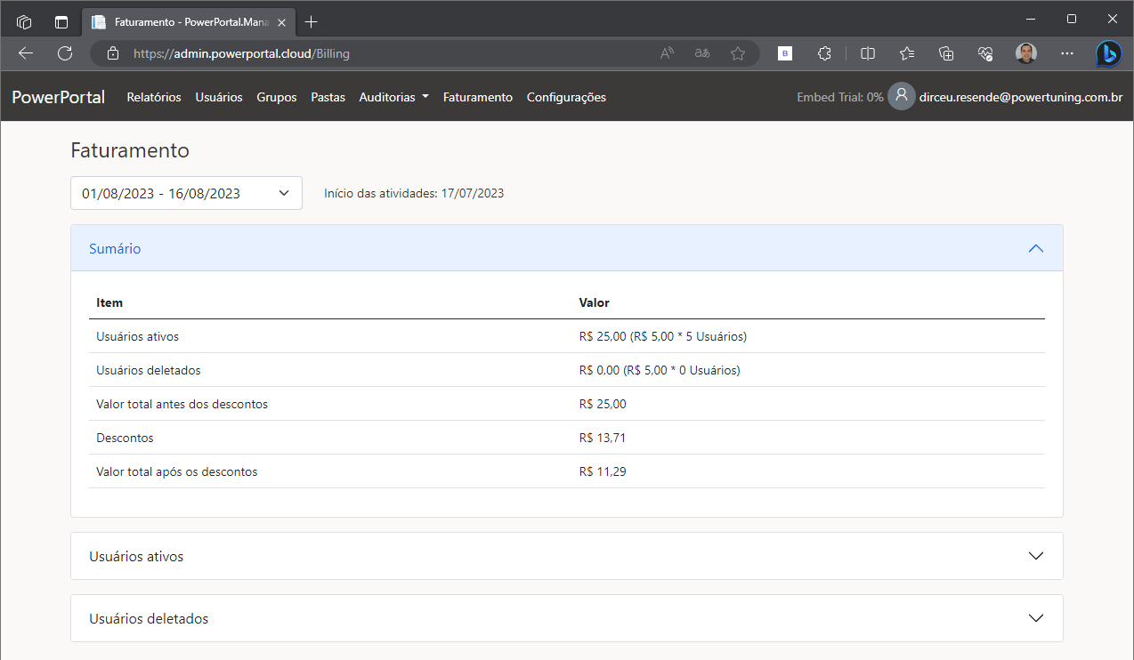 Com essa nova tela abaixo, é possível acompanhar, em tempo real, quanto você irá pagar de mensalidade dos usuários no final do mês: