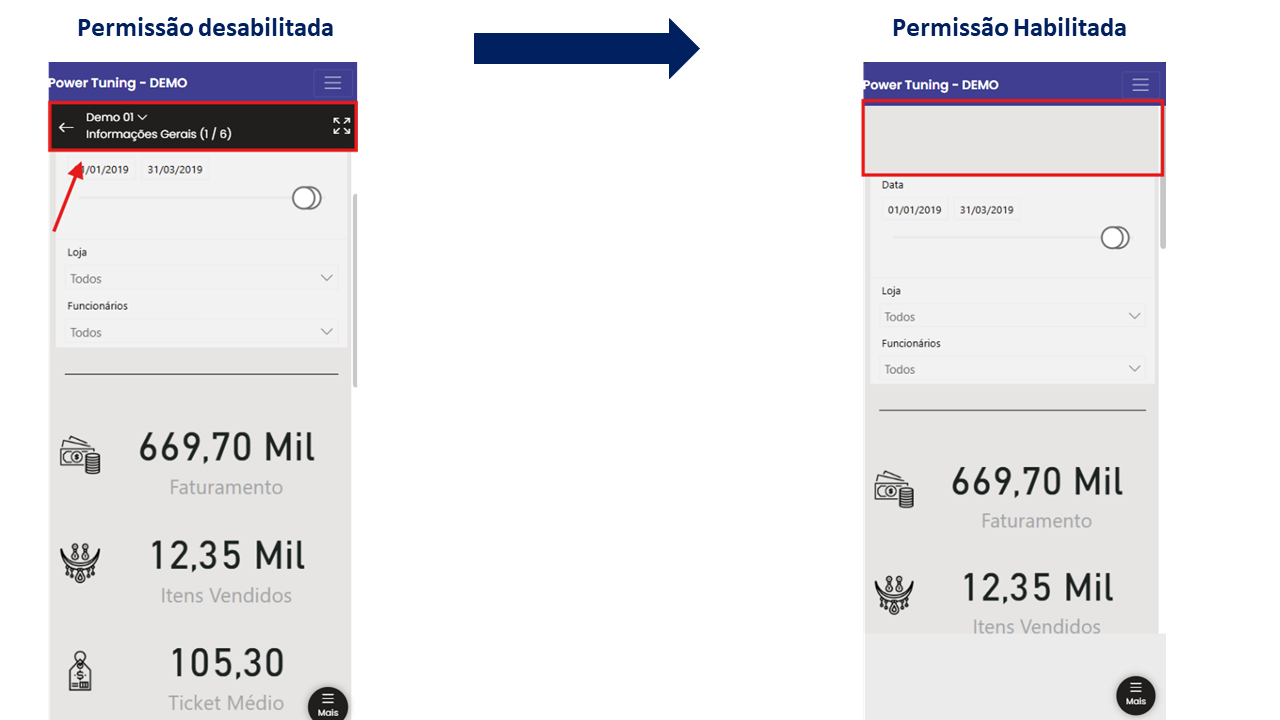 Com o objetivo de melhorar a experiência de navegação e oferecer mais flexibilidade aos usuários, agora é possível ocultar a barra de título ao acessar relatórios no modo mobile. Esta funcionalidade foi especialmente desenvolvida para tornar a interface mais limpa e eficiente, atendendo à demanda de nossos clientes por uma experiência otimizada em dispositivos móveis.
