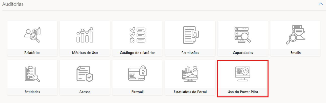 Disponibilidade do assistente: O assistente só estará disponível para um usuário se ele tiver acesso, seja a nível de grupo ou individualmente. Isso permite definir quais usuários têm permissão para utilizá-lo. Quando o assistente está disponível para um usuário, ele se tornará acessível assim que o usuário fizer login no portal de relatórios. Caso contrário, se o usuário não tiver acesso a nenhum assistente, o Power Pilot – IA não aparecerá na tela.