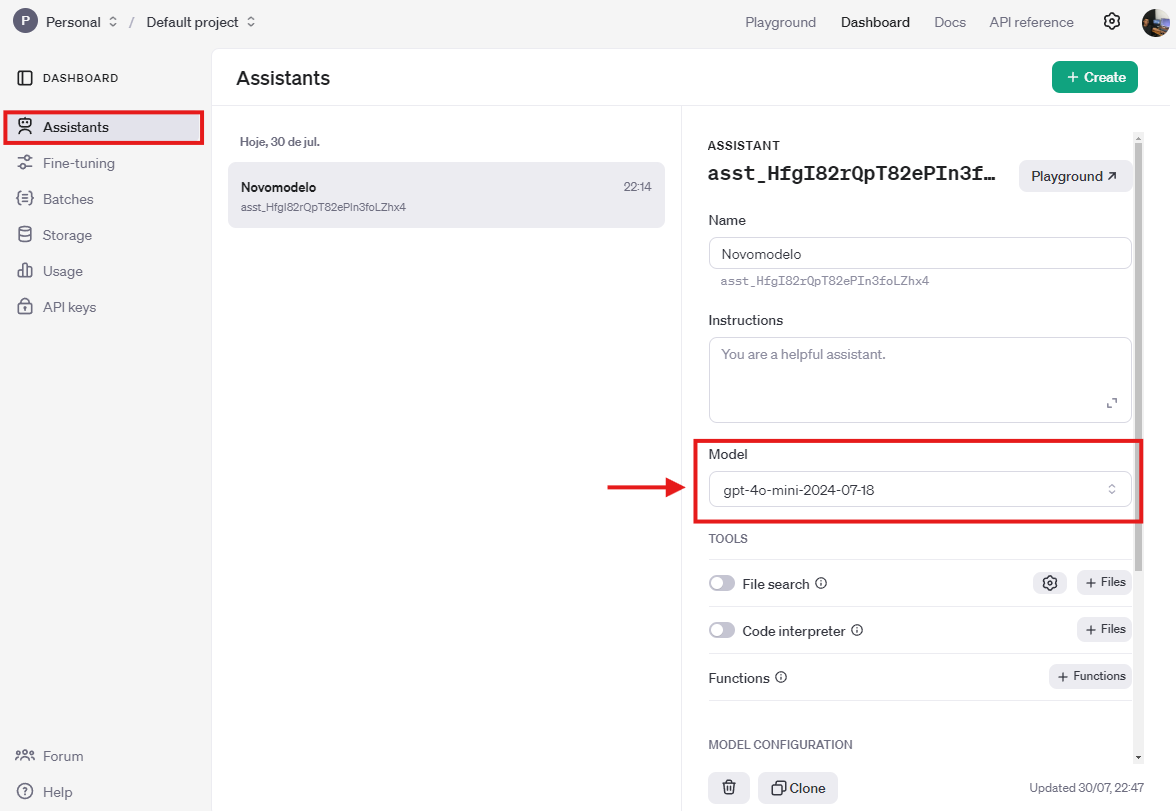 2° Passo – Definir qual o modelo do seu assistente de IA.
