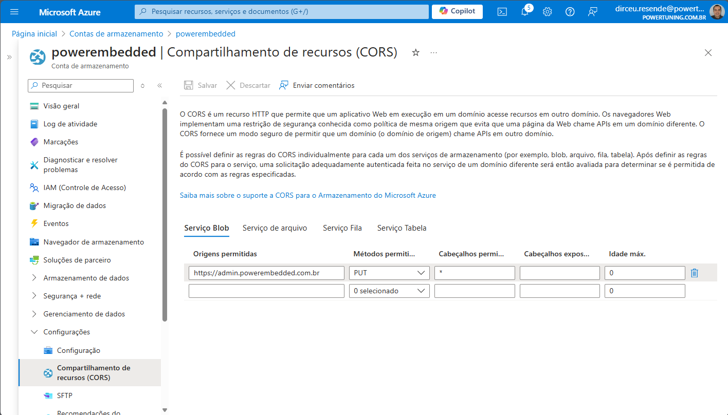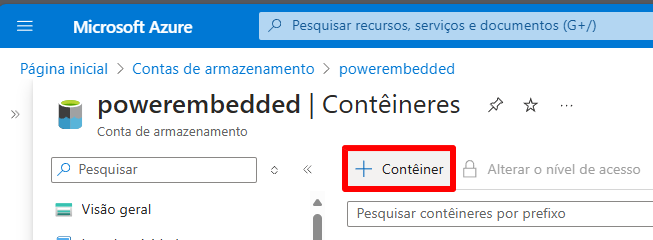 Clique aqui para visualizar o conteúdo deste tópicoAntes de configurar a integração entre o Power Embedded e a conta de armazenamento, você precisará criar a sua conta de armazenamento no Portal do Azure.