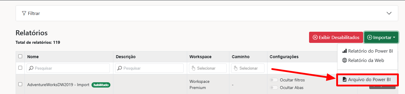 Para publicar relatórios do Power BI, diretamente pelo Power Embedded, acesse a página de Relatórios.