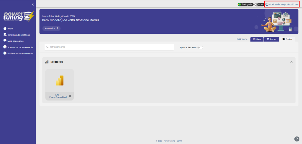 Agora, o Power Embedded conta com a funcionalidade “Visualizar como Usuário”, desenvolvida especialmente para facilitar o trabalho dos administradores do portal.